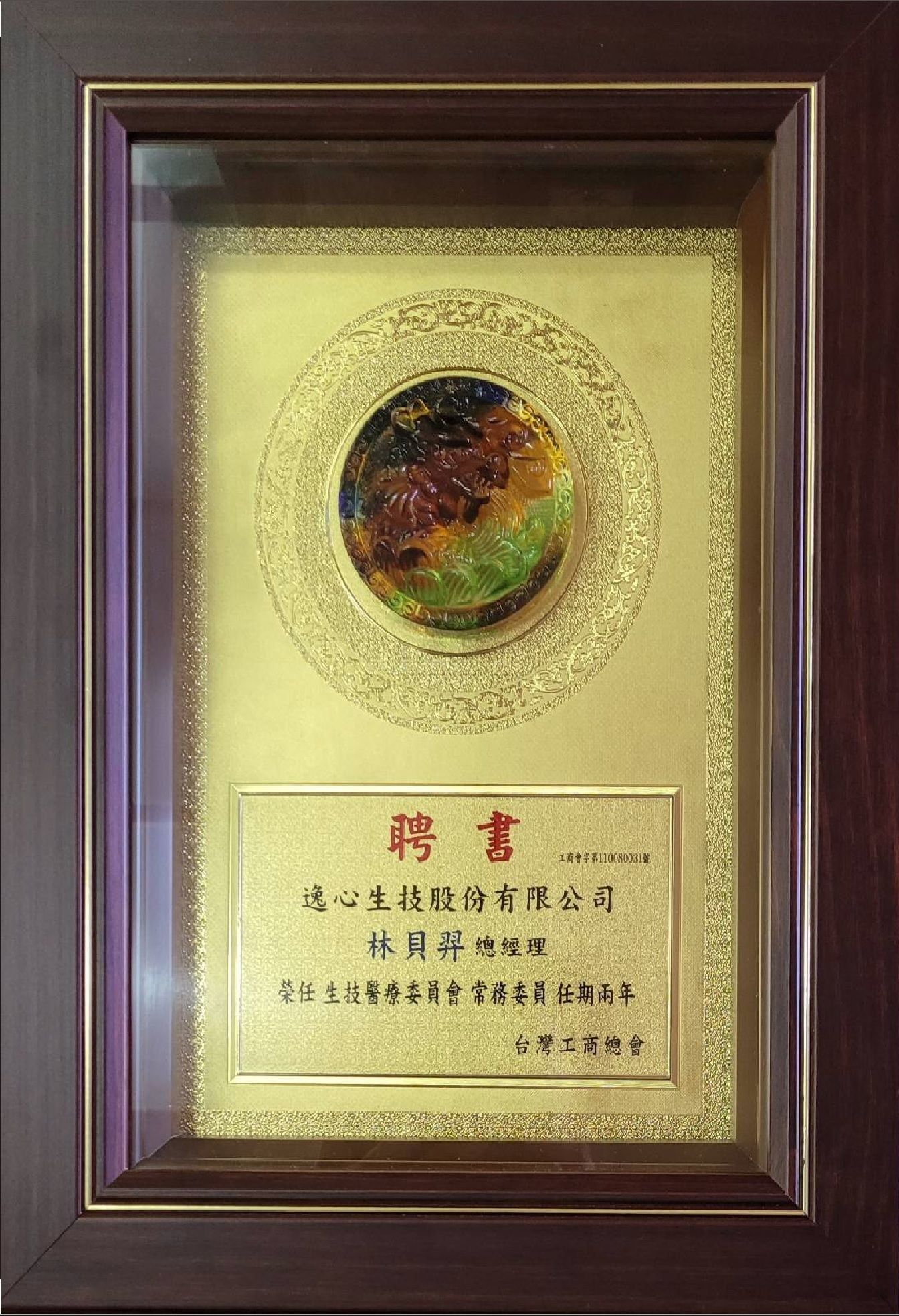 受聘擔任台灣工商總會「生技醫療委員會」常務委員。