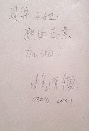 賴清德副總統親手嘉勉「貝羿小姐,熱血志業,加油!」