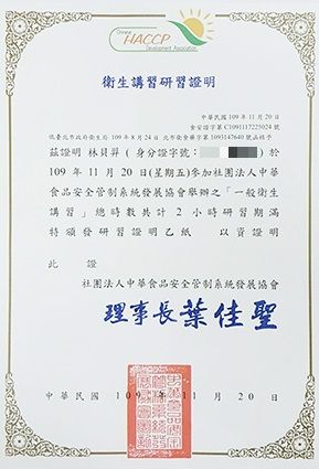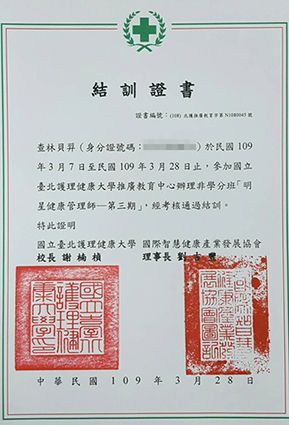 國立台北護理健康大學「明星健康管理師」結訓證書